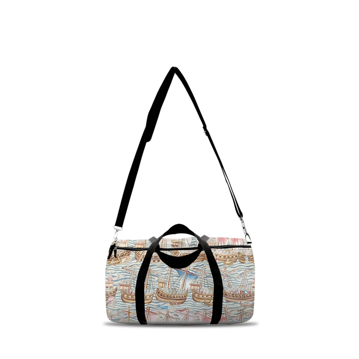 You no longer have to sacrifice style when going to the gym or traveling! Our practical duffel bag is also a fashion statement, with its nautical print inspired by the famous Battle of Lepanto, the largest naval battle in Western history fought entirely between rowing vessels.