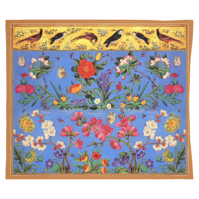 We are proud to bring you this unique floral tapestry that originates from a medieval miniature in the Golestan palace, the palace of famous Princess Soraya. This was not a simple restoration, but a full reconstruction that we conducted starting from just a fragment. This is an exclusive MedievalMade design.