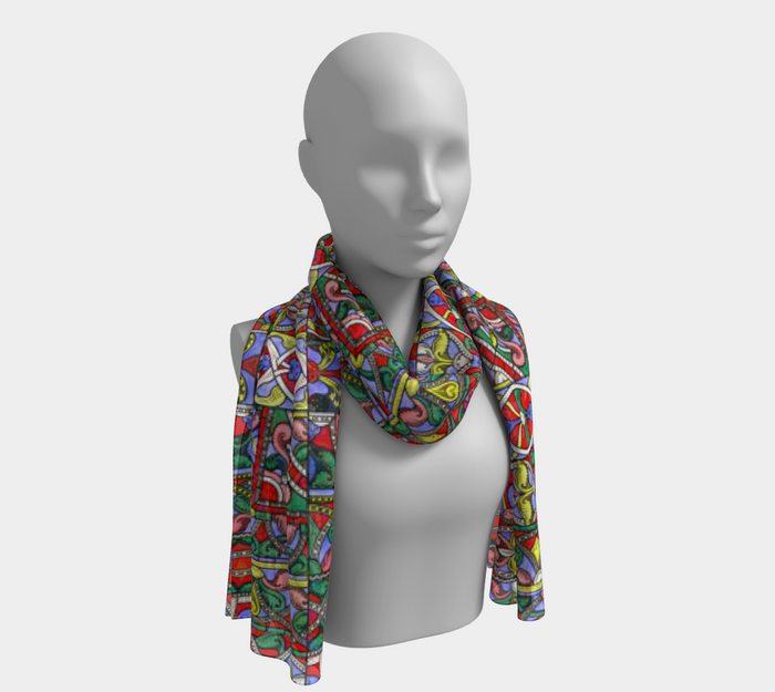 We were able to bring you all the magic of medieval stained glass into this amazing scarf that mimics the ethereal way light shines through glass. With their gem-like tones and kaleidoscopic colors, stained glass windows have been defined as the jewels of Gothic cathedrals.