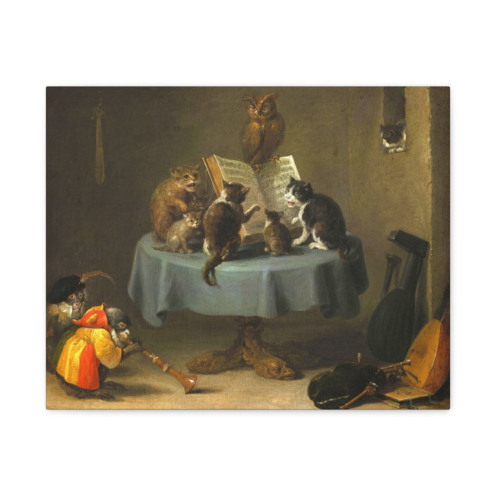 When painting this artwork, David Teniers the Younger (1610–1690) creatively interpreted an art trend raging in the heart of Europe. In fact, in the sixteenth and seventeenth centuries, the Low Countries became known for a rather unusual art trend. Singerie, which can be traced back to Ancient Egypt, depicts monkeys performing human behavior, gambling and smoking, sculpting and courting, and often wearing quite fashionable outfits. But monkeys were not the only animals to be humanized, in fact bird concerts were also popular.