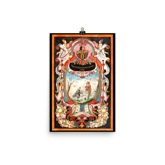 "Virtutem Suscipio Solam" is the inscription in this rare Medieval work that we have restored to its original splendor. The Latin word Virtutem means power, strength: If one has virtue, one is strong...and only who is strong can be virtuous.